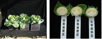 【完熟堆肥・未熟堆肥・化学肥料の施用とキャベツの生育・根の関係】