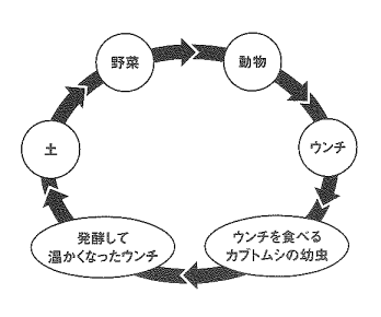 こうした食物連鎖の命のバトンリレーを、実際にその場で並べます。そして「みなさんはこの輪のどこにいますか?」と問いかけます。たいていの子どもは「野菜」と「動物」の間に自分を入れるのですが、「みんなの身体や死体は誰かに食べてもらってますか?食べてもらってないなら、みんなはこの輪の中にはいません」が正解。